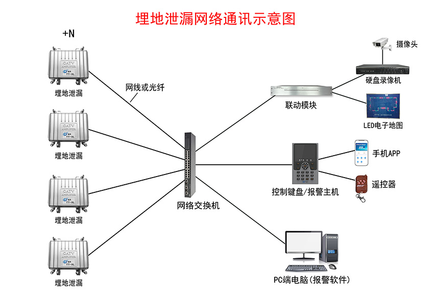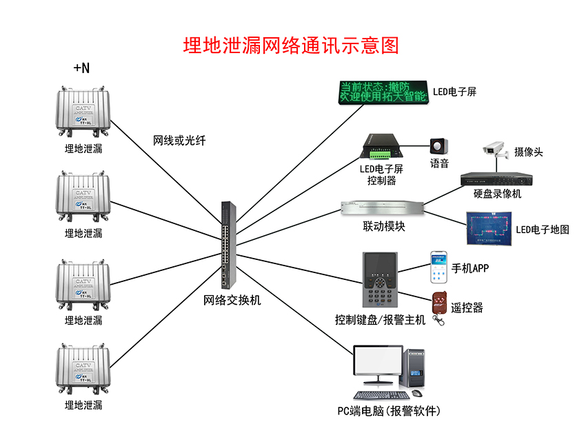 埋地洩漏入侵報(bào)警系統(tǒng)示意圖——網絡(luò)通訊+LED電(diàn)子屏+語音
