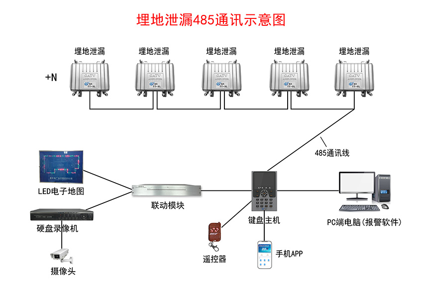 埋地洩漏入侵報(bào)警系統(tǒng)示意圖—485訊通